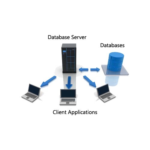 Clients access a database server through a front-end application that displays the requested data on the client machine, or through a back-end application that runs on the server and manages the database.