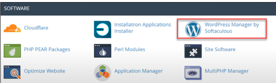 • Look for the “Softaculous Apps Installer” or “Softaculous” icon within the cPanel dashboard. It is typically located in the “Software” or “Website” section.