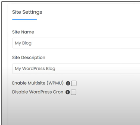 The installer provides the default Site Name (My Blog) and Site Description (My WordPress Blog).